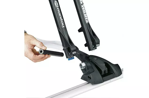 Ein Adapter für Thule OutRide 561 zum Transport von Fahrrädern mit 15-mm-Steckachsen